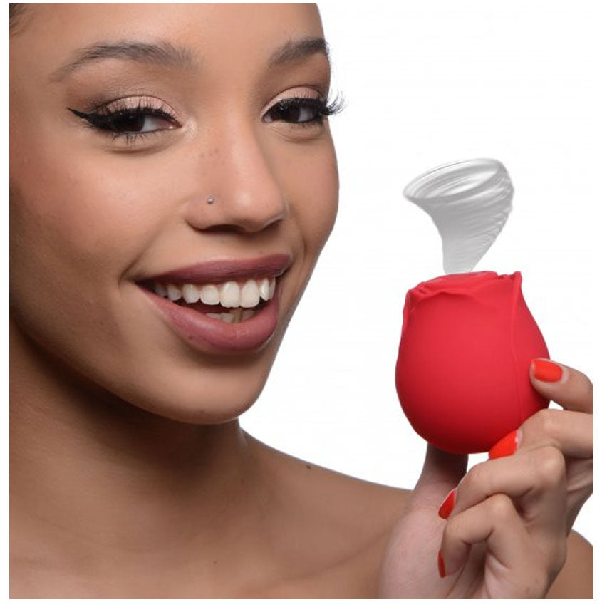 The powerful rose stimulator features 3 intensity levels and 7 unique patterns, designed to provide waves of ecstasy. Using advanced air-stim technology, the toy gently sucks at the clitoris, creating sensations that are guaranteed to take them over the edge. Made from silky-smooth, body-safe silicone, it is phthalate-free and compatible with water-based lubricants.